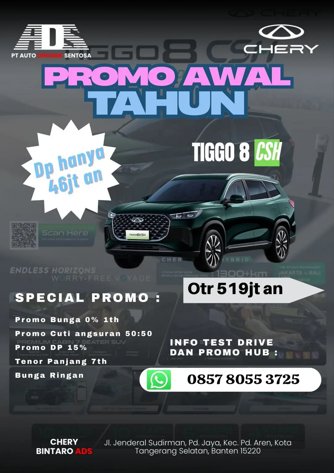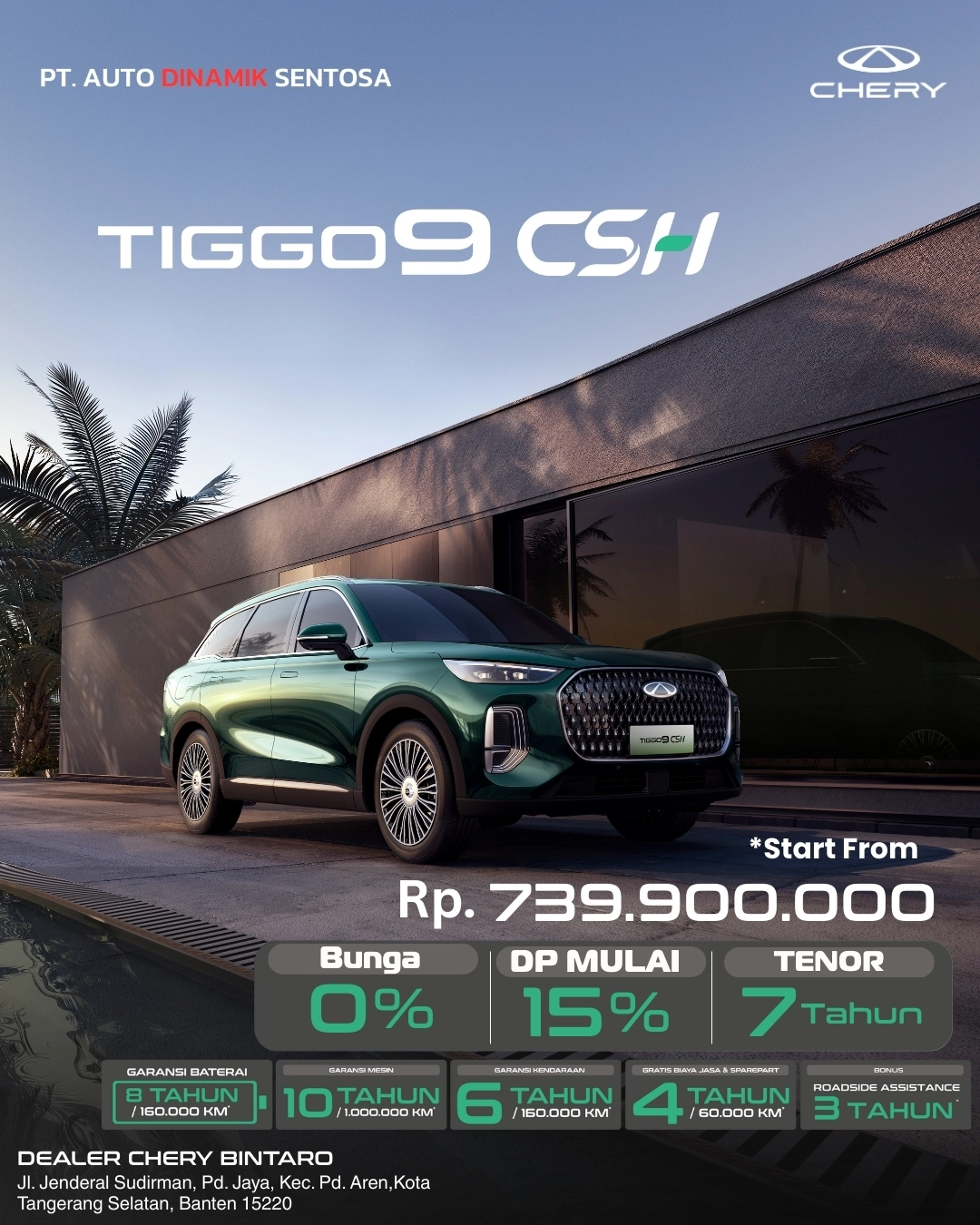 Semua mobil 100% resmi dealer Chery dengan garansi dari pabrikan penuh.